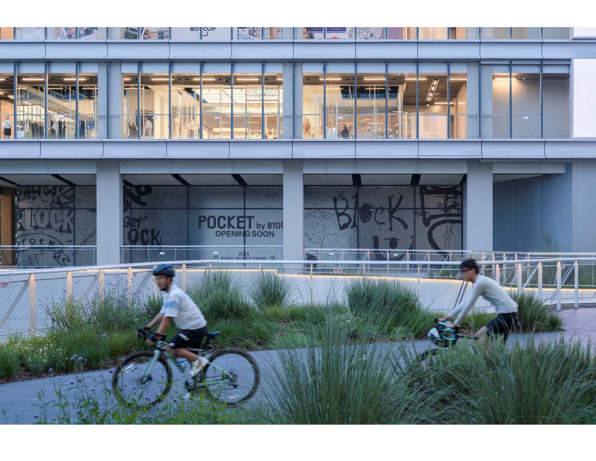 Chengdu CyPARK is a new bicycle-accessible and viral shopping center that was transformed from an abandoned community complex in the south district of Chengdu, a big modern city in Southeast China. Besides its brand-new appearance like other retail developments in China, CyPARK aimed to achieve a sustainable renovation process with a low budget, limited construction resources, and the least impact on the surroundings. The redesign of its landscape focuses on creating a cozy valley park for local people who like fashion and the lifestyle of hanging out in an outdoor shopping environment, with low-carbon sustainable approaches of utilizing native plantings and on-site materials for implementation. Since its reopening, CyPARK has become a trending destination that has received over 5,000 visits daily, has significantly reduced tons of water/energy consumption, and has fully reactivated this once-dead complex with more jobs and revenue created.