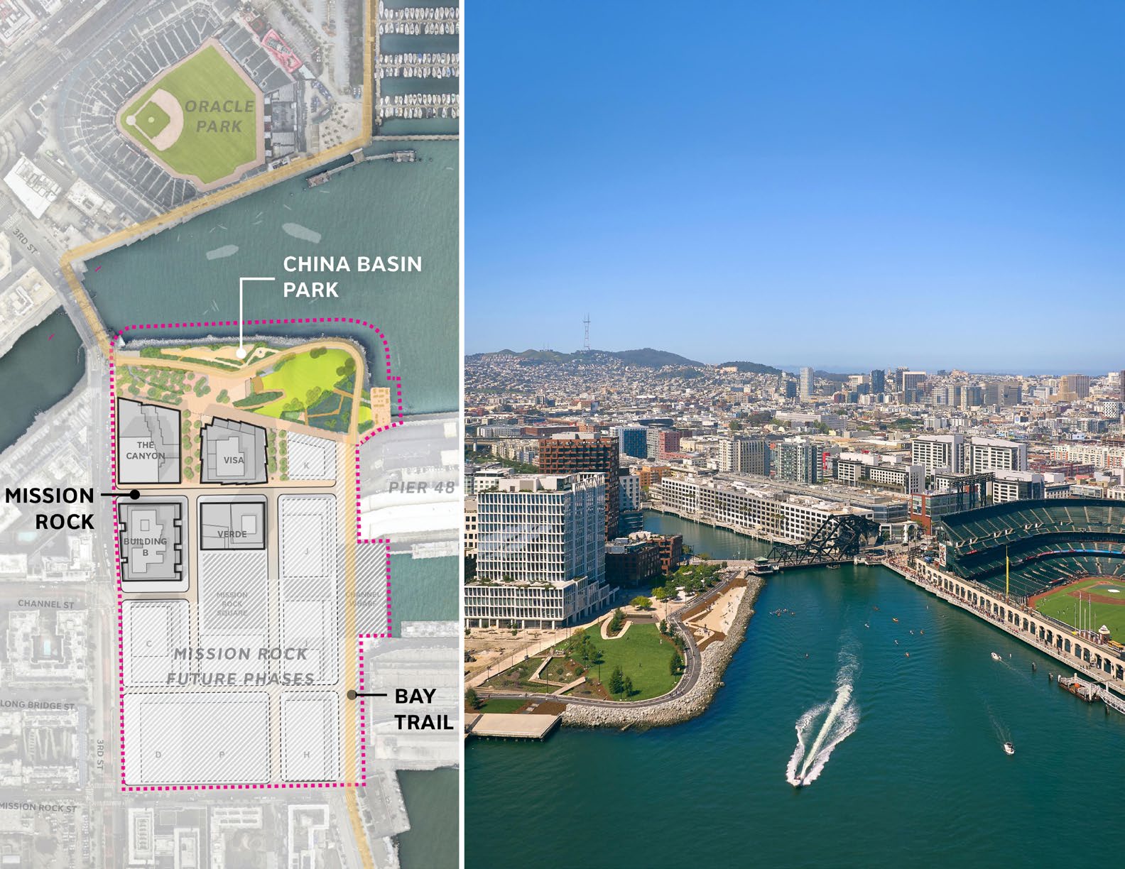 Foregrounding the living systems of the Bay, China Basin Park is a 5-acre waterfront park designed and built as the heart of Mission Rock, a new mixed-use neighborhood across from Oracle Park, home of the San Francisco Giants. With dramatic views, diverse amenities, and strong connections to the wider community, China Basin Park is a symbol of optimism for the city. The park welcomes visitors on quiet mornings to experience intertidal ecology and birdwatching, as well as lively game days when it transforms into an extension of the San Francisco Giants ballpark. Mission Rock was developed with strong values in mind: to foster an inclusive community, build resiliently, and create an iconic destination for San Francisco. As the anchor of the neighborhood, China Basin Park embodies this mission.