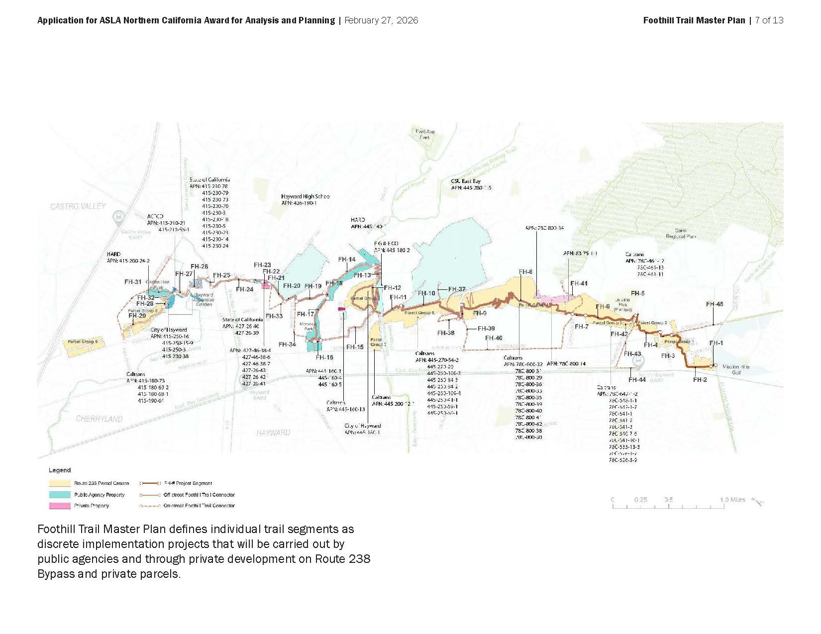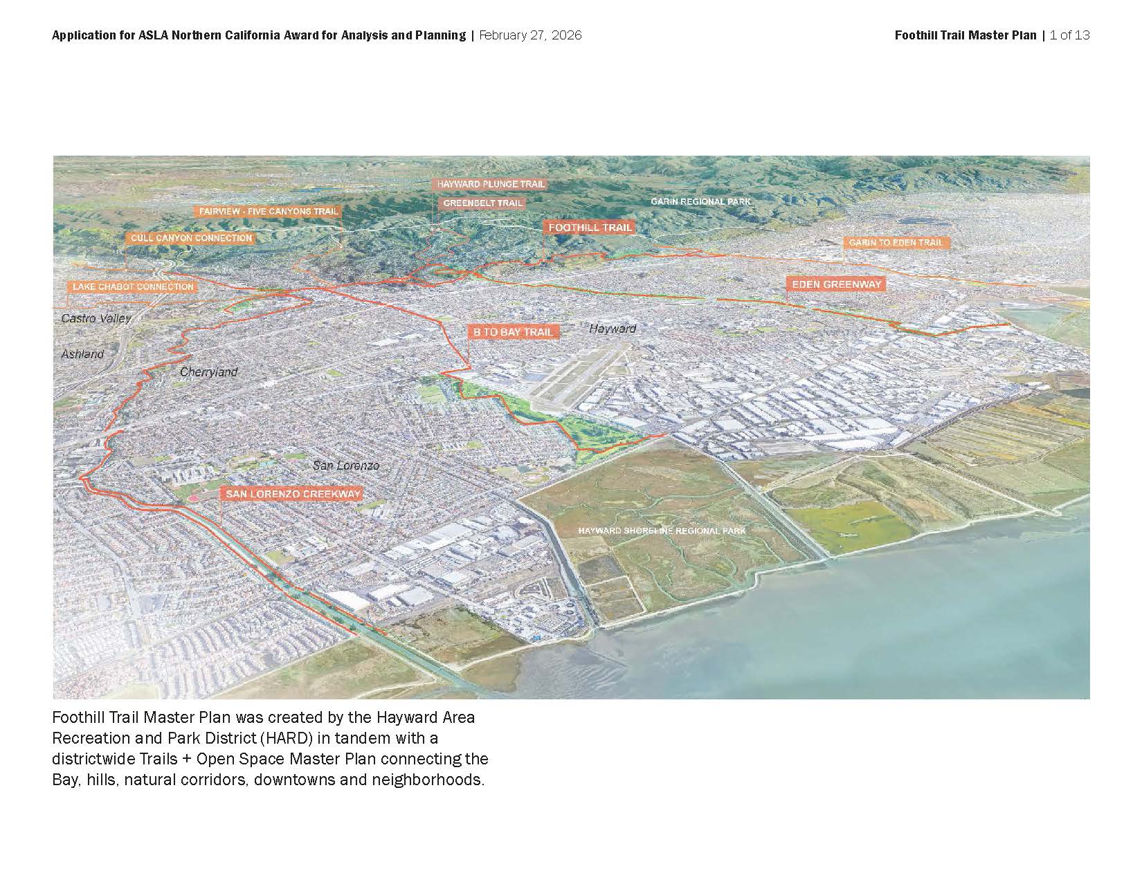 Quality of the Analysis and Planning Effort. FTMP is part of a framework that includes a zoning overlay (City of Hayward), a Trails + Open Space Master Plan (HARD), and segment-specific design (HARD, private developers.) The Plan was developed with a stakeholder committee