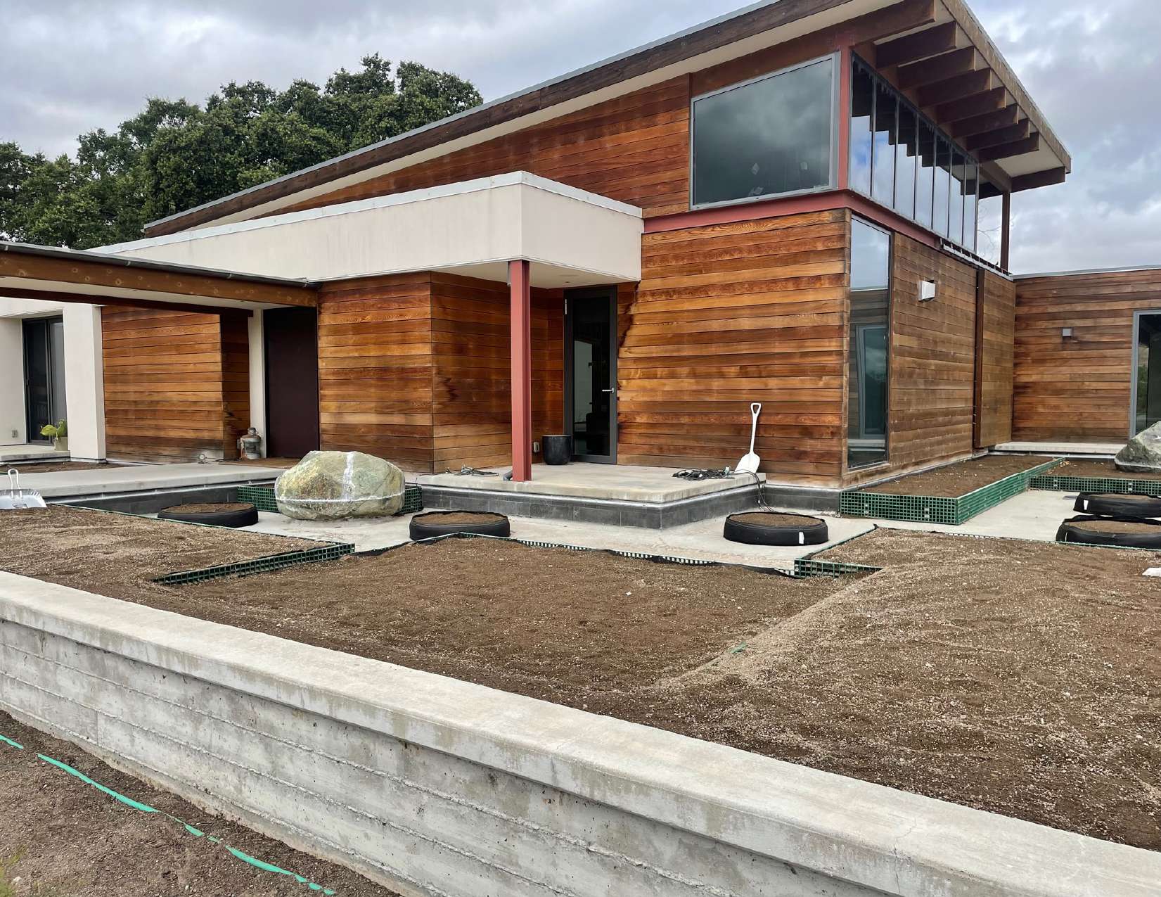 When our clients found their dream home outside the City of Sonoma, they loved almost everything about it: the location, the western views of neighboring vineyards and the hills beyond, the mature oaks and seasonal creek, and the beautiful modern architecture. Where they felt they needed help was making the front entry softer and more welcoming.