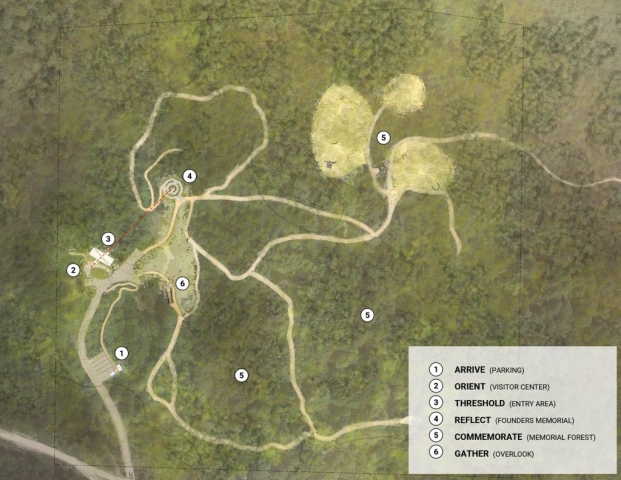 The submitting landscape architecture studio was selected to design America’s first forest spreading cemetery. The Client offers an alternative to the traditional cemetery, a conservation system of tree sponsorship that preserves, restores, and manages large forests in the US. The studio acted as the prime consultant and assembled a team of forest ecologists, artists, designers, and other consultants to realize the first project in Northern California. Their work included master-planning the property, designing structures, spaces, trail systems, wayfinding and signage, the life marker, and habitat restoration.