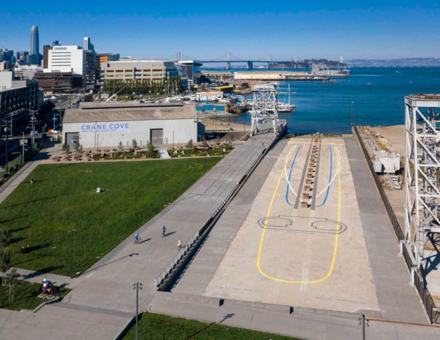 In a time of a global pandemic when cities have realized more than ever that open space is critical for the health of their residents, Crane Cove Park opened in September in 2020 with great excitement and anticipation. Located in Dogpatch, San Francisco’s fastest growing neighborhood, this 7-acre park provides a new major open space in an area that historically has lacked it. Crane Cove Park is one of the first major open space projects along the Blue Greenway, a network of bayfront parks that aims to improve Southeast San Francisco. It’s also the first park built in Pier 70, a historic district with a master plan being carried out by the Port of San Francisco within a 69-acre, former shipbuilding site. The site has experienced a transformation from a closed industrial site to what is now a thriving, active waterfront park. The design embraces and celebrates the site’s rich maritime history while also integrating new access to the water and diverse recreational program.