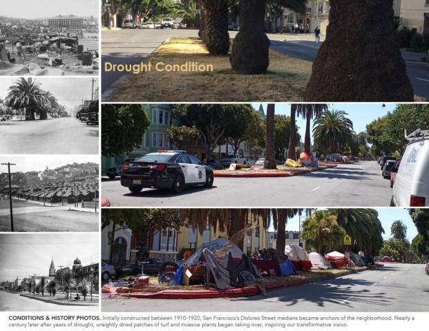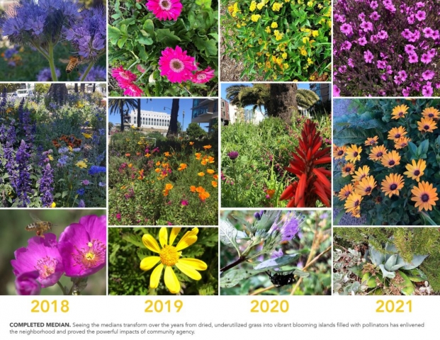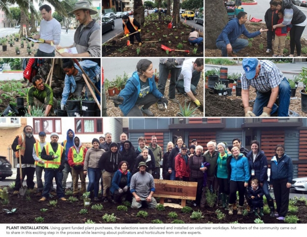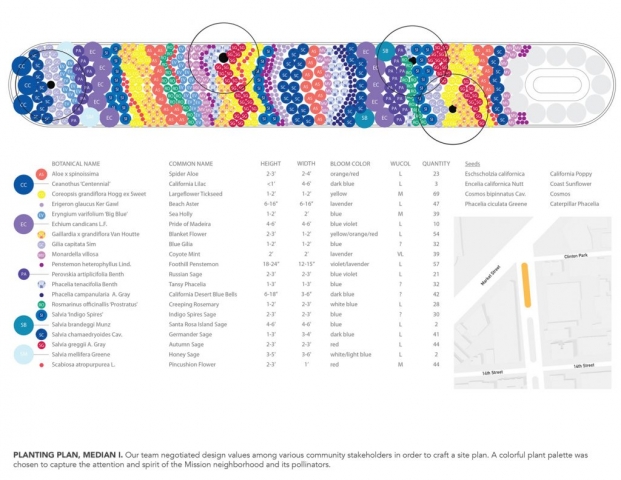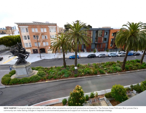 The Dolores Street Pollinator Boulevard is an urban resiliency project that creates healthy and diverse ecosystems, cultivates community, and revives the civic values of one of San Francisco’s landmark streets. Located in The Mission, an iconic neighborhood that struggles to maintain its identity of refuge and diversity, the Pollinator Boulevard is a ribbon of habitat that redefines street median space in a beautiful and ecologically meaningful way. This highly visible project fosters community building and stewardship for critical habitat and vulnerable species in an underutilized space. By reviving the historic intentions of a splendid landscaped boulevard, islands plagued with brown turf and invasive weeds are replaced with smart pollinator plantings that better reflect the colorful and diverse character of the neighborhood and respond to the ongoing water shortage in California. Via a non-profit, the project mobilizes the voices and actions of local residents, city officials, businesses, educators, scientists and volunteers seeking to find enduring solutions for contemporary urban design challenges.