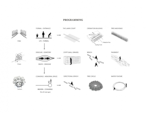 Within these protected forests, families choose trees to mark the place where they’ll spread their loved ones’ ashes over generations. The concept has a simple poetry — merging ritual, memorial, and forest conservation — yet its realization involved a large team of design and technical specialists, led by the submitting landscape architecture firm. The project establishes a framework for future sites, each with their own unique qualities.