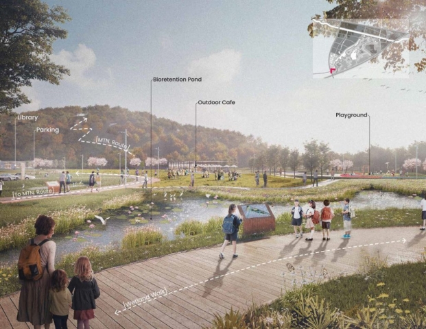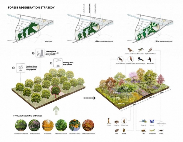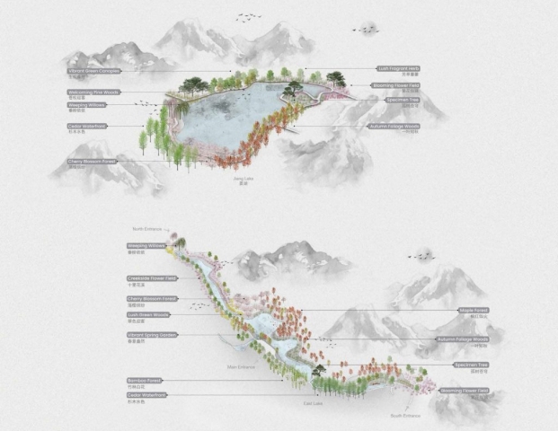 Ningbo Lion Mountain is at the heart of the 2019 Jiangbei District masterplan that envisions new recreational linkages which take advantage of the site topography. The design proposes strategic access points and a comprehensive network of various paths and programs to connect the park to its urban interface. This framework prioritizes ecological regeneration and innovative programming to support climate resilience and community health.