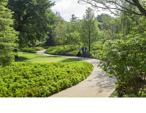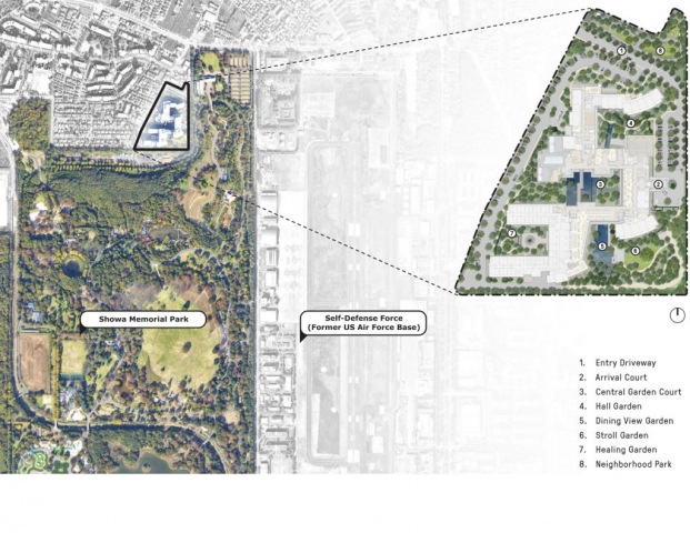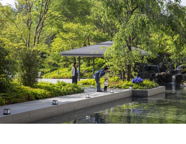 Showa Memorial Park, in the western Tokyo suburb of Tachikawa, opened in 1983 to commemorate the 50th anniversary of Emperor Showa’s reign. The 400-acre national park repurposed a former Japanese military airfield and postwar-era US airbase, which was returned to the Japanese government in 1977. Tokyo’s largest park, Showa Memorial Park, has become a national treasure and the ideal setting for Japan’s premium senior living brand, SunCity by Half Century More. In 2018, HCM opened its newest senior community: SunCity Tachikawa Showa Kinen Koen. Bordered on the east and south by a great park, this flagship LPC (life plan community) provides 501 independent living units and 91 nursing units on a 9-acre site. The Japanese garden design technique shakkei, the principle of borrowing nearby or distant scenery, became the guiding precept behind the site planning and landscape design. The borrowed woodland edges of Showa Memorial Park and sensitive building layout, in conjunction with the introduced landscape, reinforces the experience of being “in the park” at this landmark senior community in Japan.