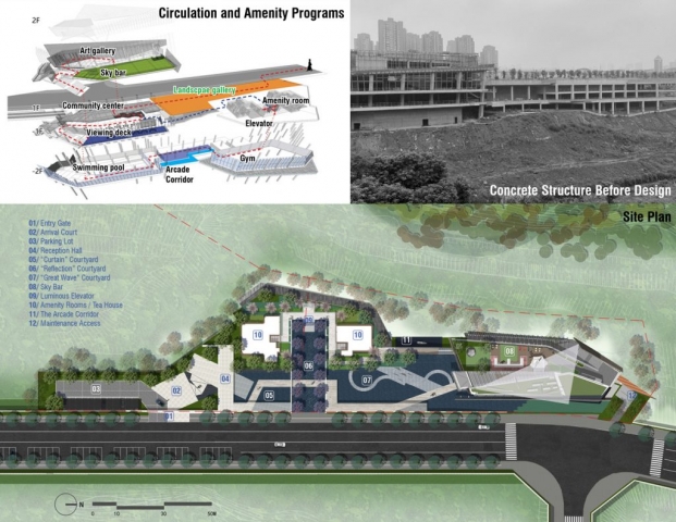 Once an unfinished, abandoned concrete structure, the YIFANG Art Center has become the heart and soul of a new community in the Dazhulin district of Chongqing. This structure’s masterful adaptive reuse provides essential social gathering opportunities for the new community, from an indoor swimming pool and gym to the sky bar, multi-purpose rooms, and art gallery. The space not only houses art and sculptures but is an exhibit in and of itself. The design takes cues from the region’s geography as a transitional area between the Tibetan Plateau on the Yangtze River banks by placing water as a central organizing element of the site’s many rooms. Principles of traditional Chinese garden design are artfully woven into each room in a contemporary way: the denial and reward, the hide and reveal, while reflection, shadow, and light blur the lines between structure and landscape. A striking transformation from the empty concrete box it once was, the YIFANG Art Center provides community cohesion and social support for the growing Dazlhulin community through a celebration of art and culture.