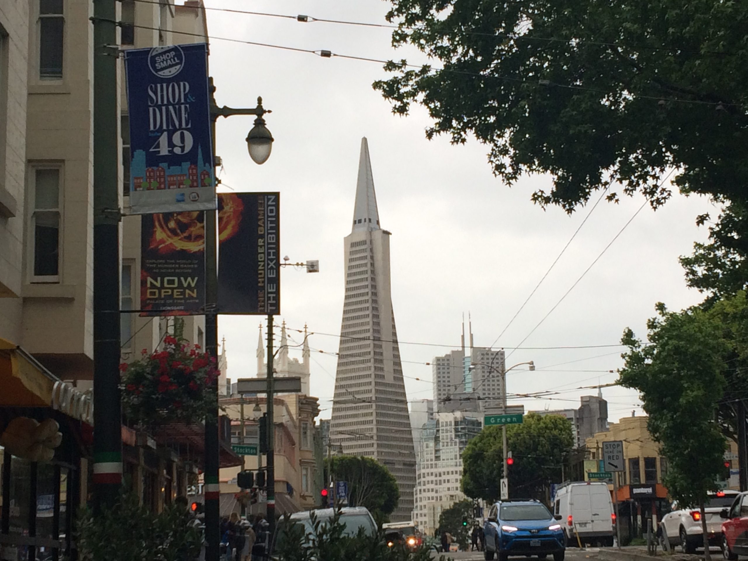 On an unusual rainy Saturday in May a group of intrepid urban sketchers met in Washington Square, umbrellas and sketchbooks in hand, to participate in an afternoon of on location sketching and café hopping. Led by drawing champions Chip Sullivan and Jim Richards with a little assist from myself, April Philips, the group explored the treasures and iconic places of this charming San Francisco neighborhood.